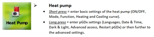 6. Long press the Heat Pump button on the pGDx touchscreen
