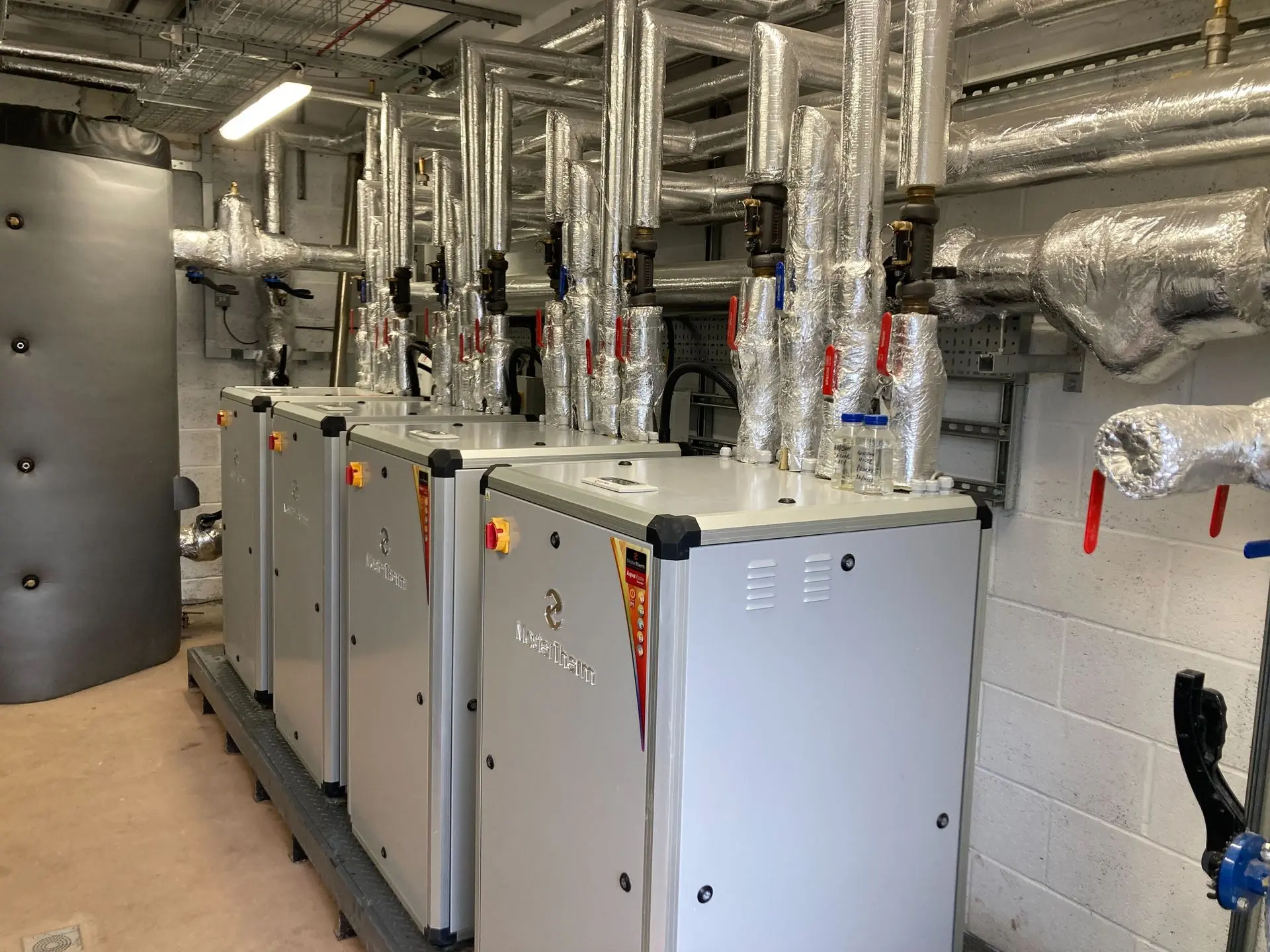 System: 4 x MasterTherm AQ90i & 1 x MasterTherm AQ40ZHx Ground Source Heat Pumps
