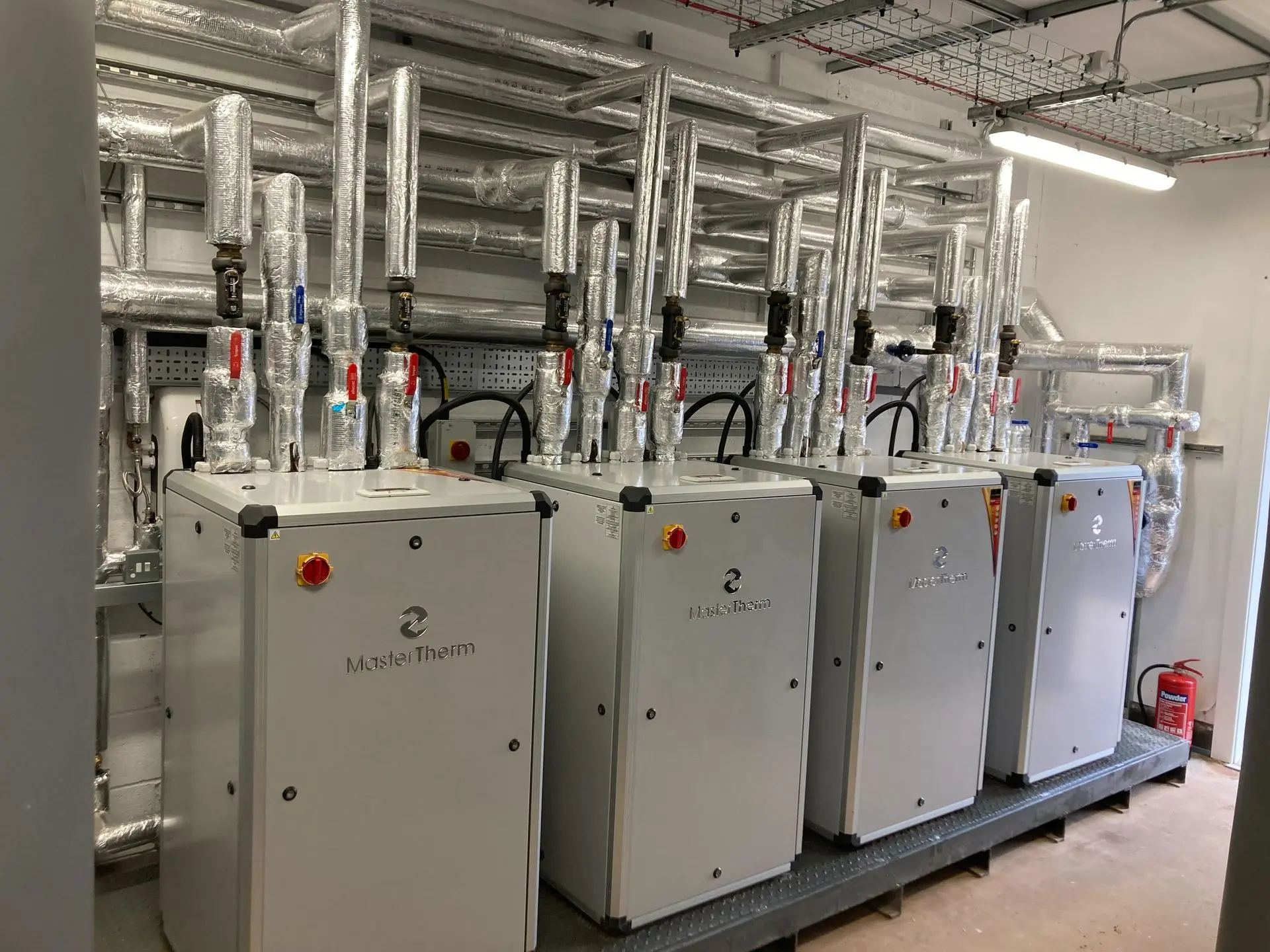 • 4 x MasterTherm AQ90i inverter-driven ground source heat pumps