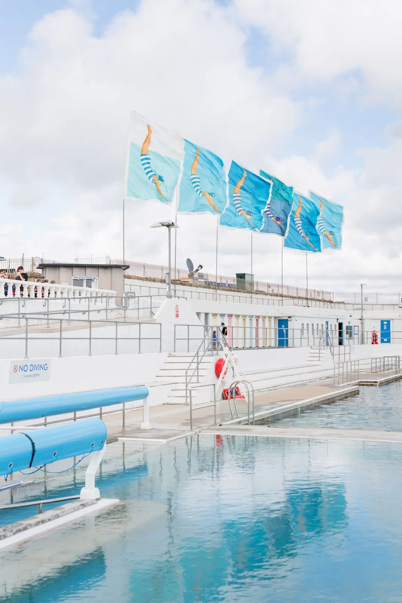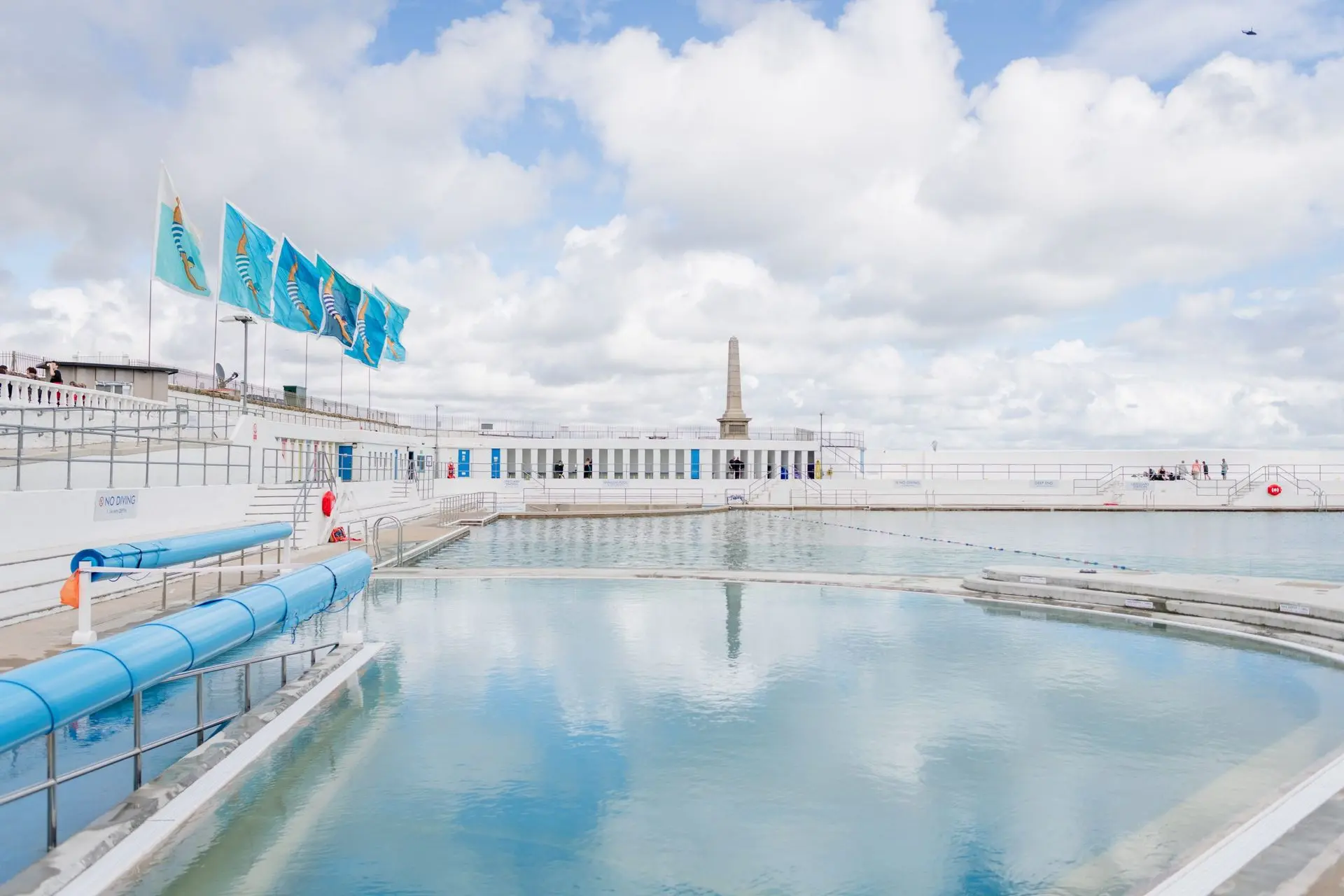 Jubilee Pool is a Grade II listed art deco lido located in Penzance, Cornwall. Originally designed by Captain F. Latham and opened in 1935 to commemorate King George V’s Silver Jubilee, the pool has long been a cherished community landmark. Built on Battery Rocks near the harbour, it was engineered to withstand Cornwall’s powerful coastal tides and provide a safe, elegant swimming space for locals.