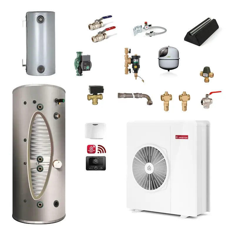 - Heat pump-specific components (e.g. anti-vibration feet, valves)