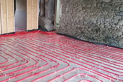 Underfloor heating water temperatures are lower than that of radiators as they are a more efficient heating method. A lower input water temperature means that the heater does not need to use so much energy, thus reducing the cost to the homeowner. The lower input water temperature makes UFH ideal for use with Thermal Earth’s range of ASHP and GSHP.