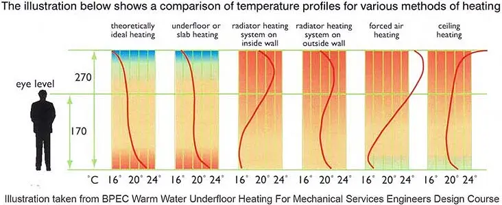 Cleaning floors is easier and wet floors dry much quickerHot air rises, which is why heating from the ground up is the most sensible and efficient method of heating compared to conventional radiator systems, underfloor heating is silent.